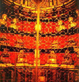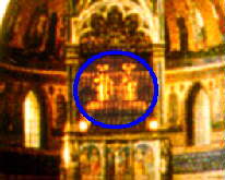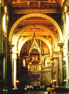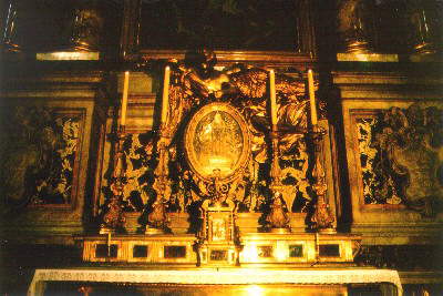 This is the High Altar of the Lateran Basilica (the Pope's Cathedral). The larger-than-life bust reliquaries which contain what is left of the Apostles' heads can be seen in the chamber above the Altar, but because of the height they can only be viewed from a great distance in the Nave. |