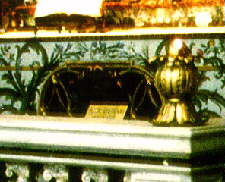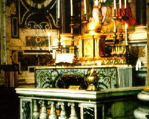 Shown is the altar in the south transept of St. Peter's Basilica where the relics of Sts. Simon & Jude, Apostles, are preserved. The grille in the altar affords a view of the covering of the tomb but the relics are not visible. |