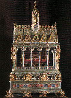 | This silver reliquary of the head of St. Ladislas, King of Hungary (early 15th c.) is in the Cathedral dedicated to the Assumption of Our Lady (Diocese of Gyor). It is located in the Sanctuary of the Hedervary Chapel. |